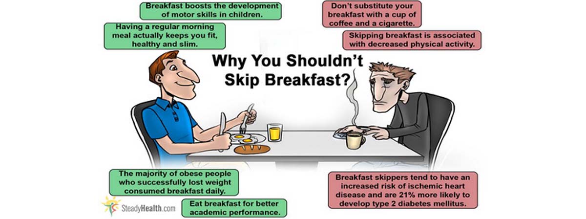 Skipping breakfast prolongs the duration of starvation after the last night meal. This results in an increased fat storage from whatever is consumed. This response of body occurs due to action of anabolic hormone insulin.