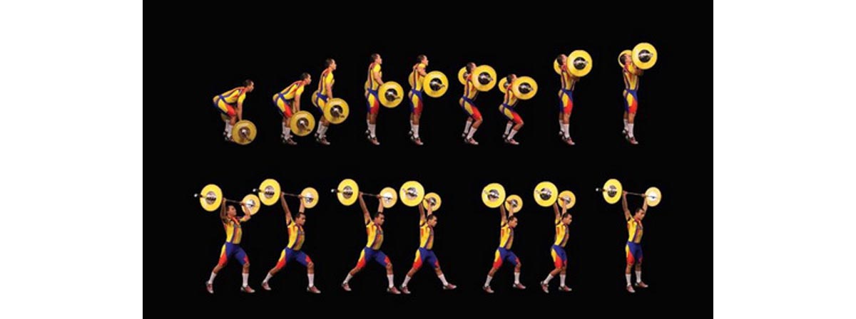 The first pull is very like a deadlift. Start the movement by driving the floor away with your heels and tightening your butt. It’s a hip hinge and it’s largely powered by hip extensors. Where it differs from a deadlift is that it needs to accelerate. Don’t make the beginner’s mistake of trying to snatch the bar off the floor fast. Start slow and then quickly accelerate to get speed and power. At this point it’s a fast deadlift. When this phase of the pull is completed the bar should be level with your thighs, your hips only slightly flexed and the bar still moving upwards – and still accelerating.