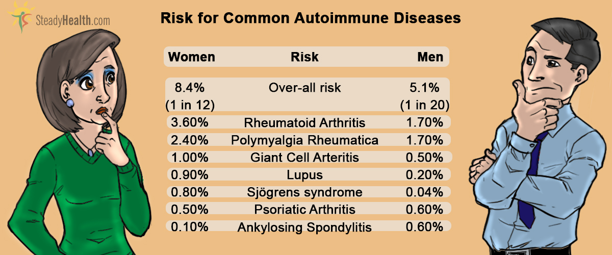 According to the latest research published by Mayo Clinic researchers, a woman's lifetime risk for acquiring autoimmune disease is around eight percent, while a man's risk is at five percent. This means that one in twelve women, and one in twenty men may develop a disorder, which involves the body's immune system attacking its own tissues. If that does not sound alarming enough, we can ask the fifty million Americans, mostly women, who are currently suffering from this type of health problem, what it is like to have low-grade fever, chronic fatigue, and other vague physical and mental symptoms.