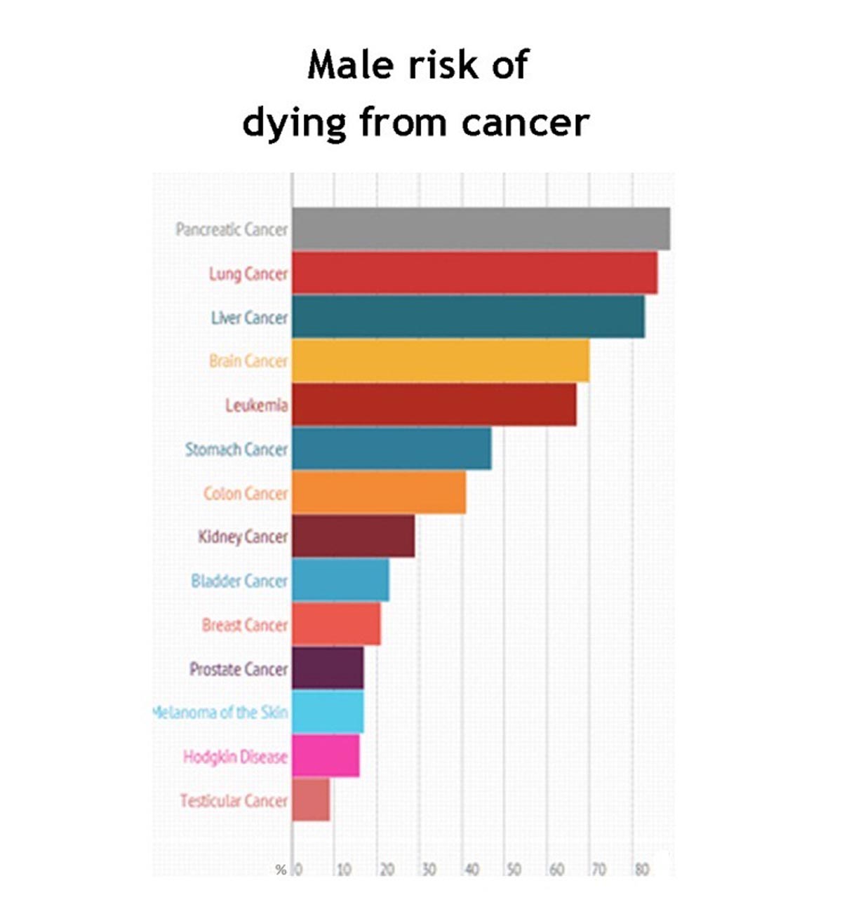 American men have a 1.48% risk of developing pancreatic cancer. If they develop this kind of cancer, they have an 89% chance of dying from it.