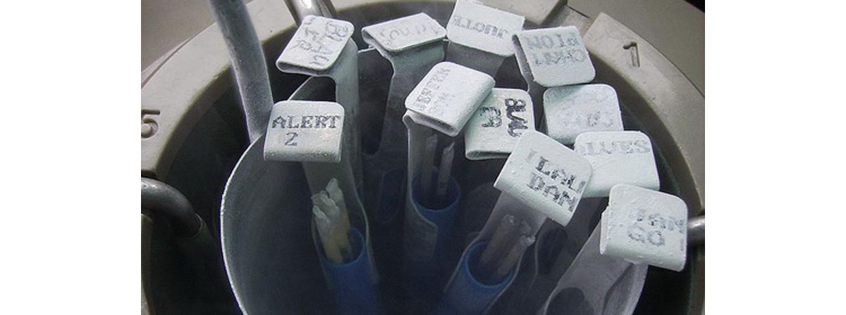 - Photo courtesy of Uwemuell by Wikimedia Commons : commons.wikimedia.org/wiki/File:Gefriersperma.JPG