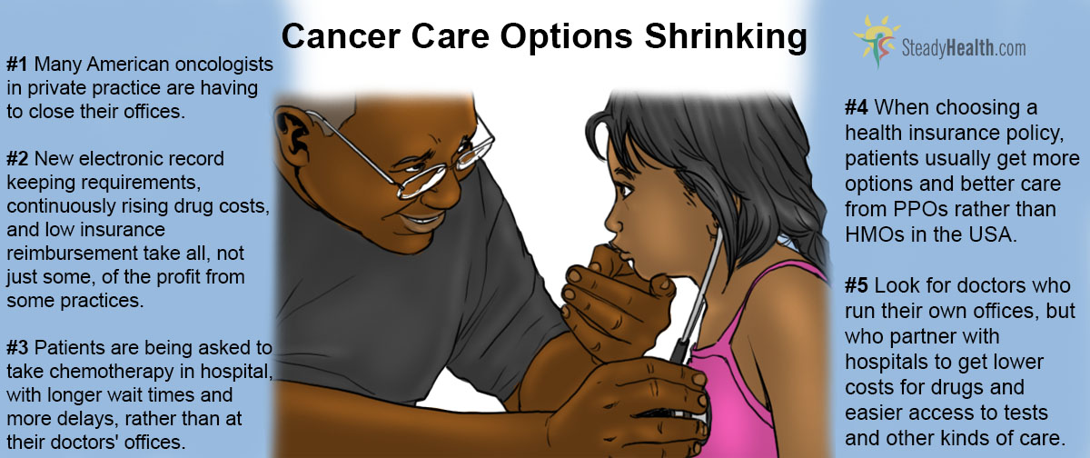 It's getting harder and harder, however, to find a private clinic for cancer treatment. The Community Oncology Alliance, an advocacy group representing about 1,500 private cancer clinics in the United States, notes that since 2008: