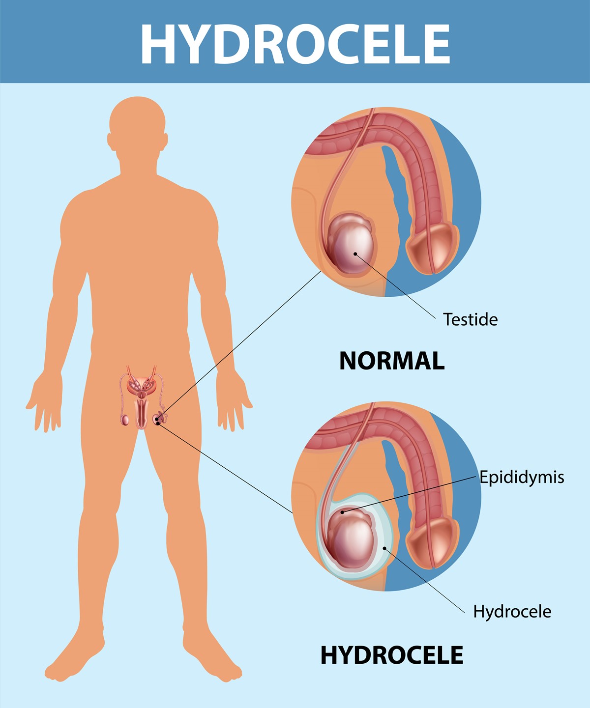 The last definite test to confirm you have hydrocele will be taking a penlight and shining it from beneath your scrotum. The physician should be able to see the clear fluid surrounding your testicles.