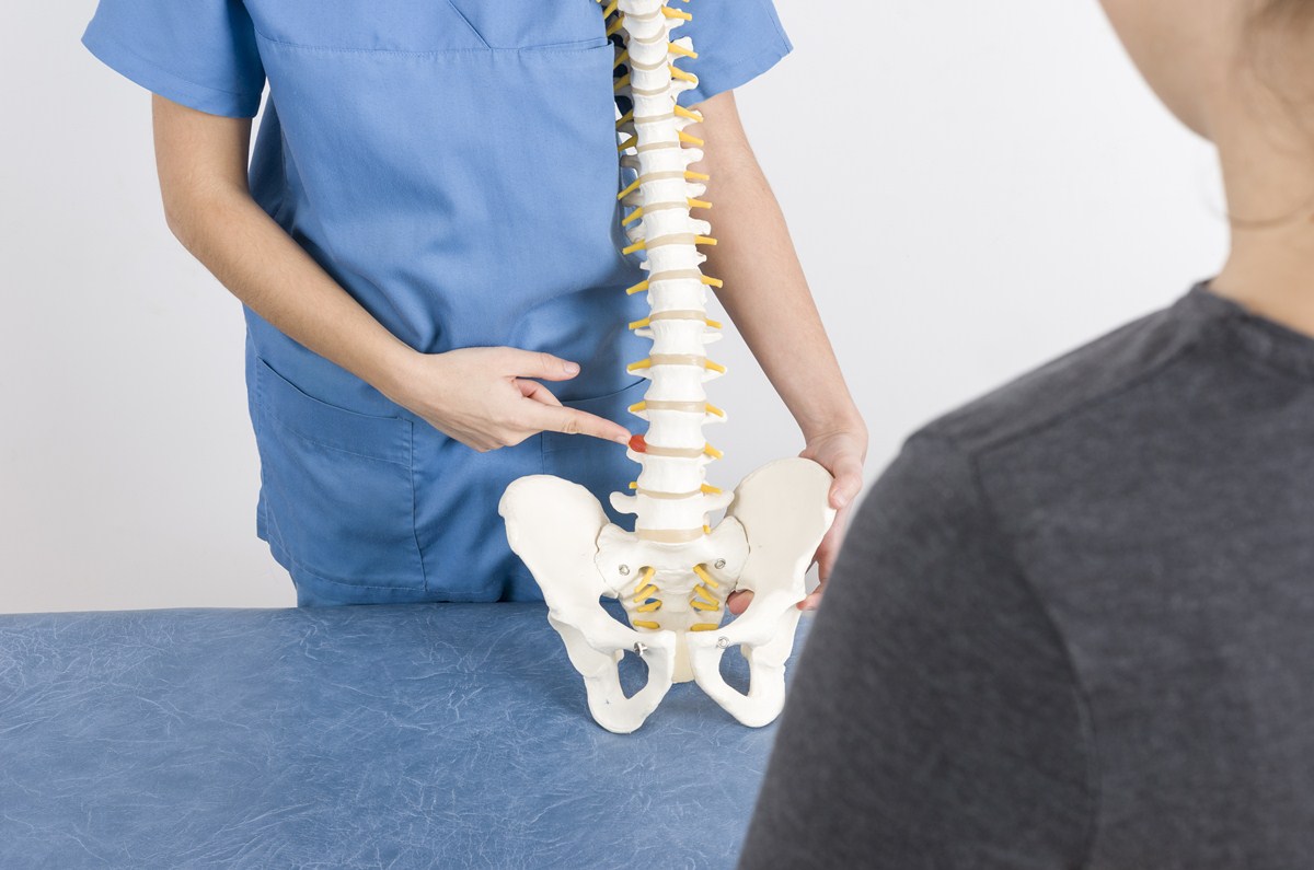 Another common symptom is sciatica, which is caused by pressure on the nerves that form the sciatic nerve. This is associated with one-sided pain, burning, numbness, and tingling that radiates from your buttock into the leg and even into the foot.