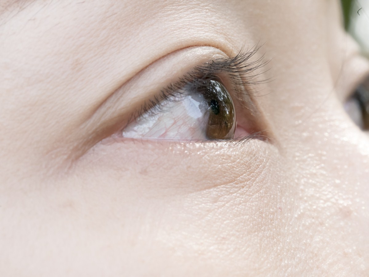 Symptoms are often mild, starting with the appearance of a yellowish or pinkish growth of a fleshy tissue from the side of the eye. Some people may experience itching and a gritty or foreign body sensation in the affected eye. Others may experience redness, burning sensation and inflammation when the growth becomes bigger. A pinguecula usually does not affect one's vision, but if it develops into a pterygium, which crosses to the cornea, it may cause astigmatism and blurring of vision.
