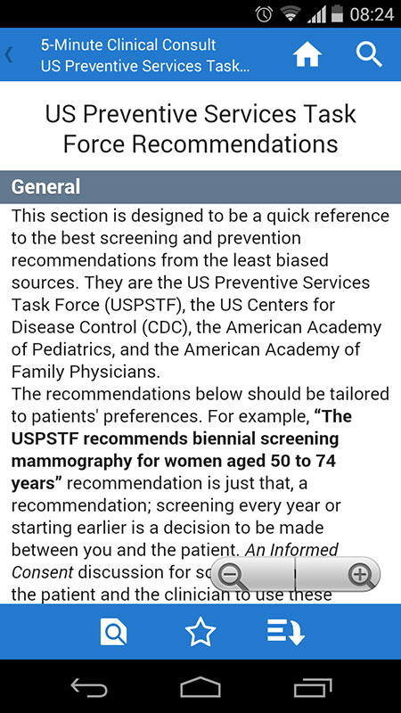 The free preview doesn't impress. Out of thousand topics advertised, only a small portion is available for free. It would be better if the full-app was made available for free for a limited period of time, which would provide better insight in what users can expect. This way it offers pretty much limited preview. But what does impress is the fact that 5 Minute Clinical Consult app cover almost every condition known.