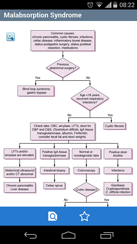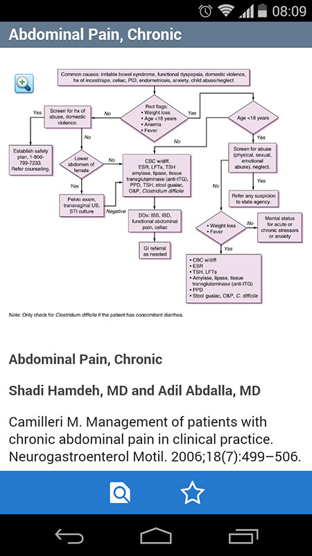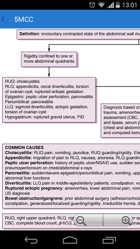 The algorithms provided in this app are actually just flowchart diagrams, allowing users to narrow down medical symptoms in order to diagnose a condition. As diagrams, they work well, you can zoom them in, which works nice even on smaller screens.