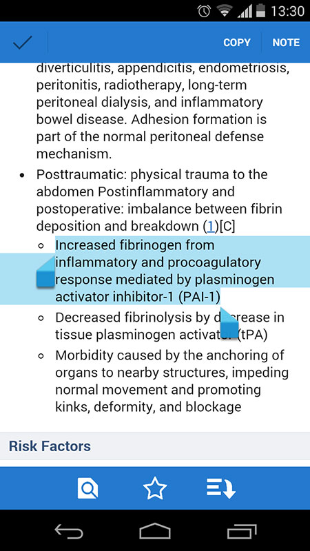 You can add each topic into favorites for easier access from the main screen. Also, the app allows you to add notes by highlighting the portions of text, which is very useful feature, especially for students and interns.