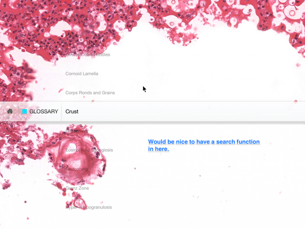 A user will also be able to add subjective notes to help distinguish key pathological features and make reviewing the new material more efficient. User also has the ability to generate tests that will be able to test their knowledge and see how effective their study habits are.