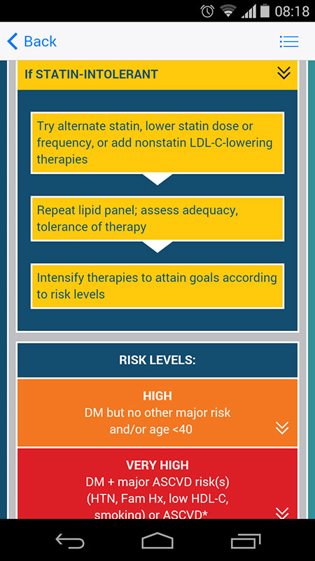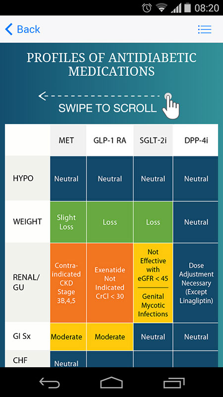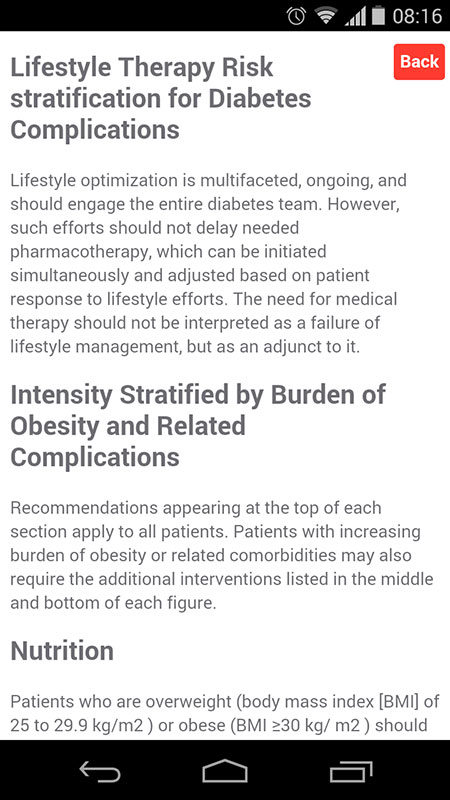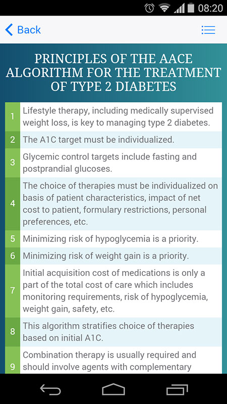 AACE Algorithm app makes all these complex diabetes-related decisions much easier, primarily due to easy-to-use interface and detailed evidence-based recommendations presented in an intelligible format, and updated regularly.