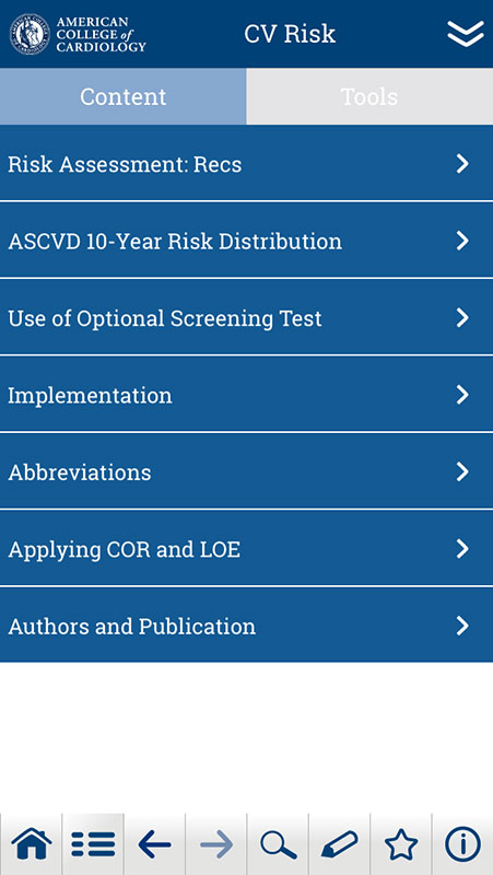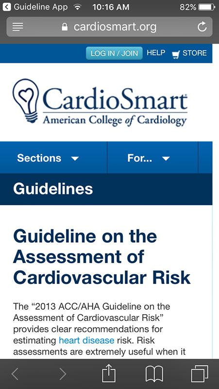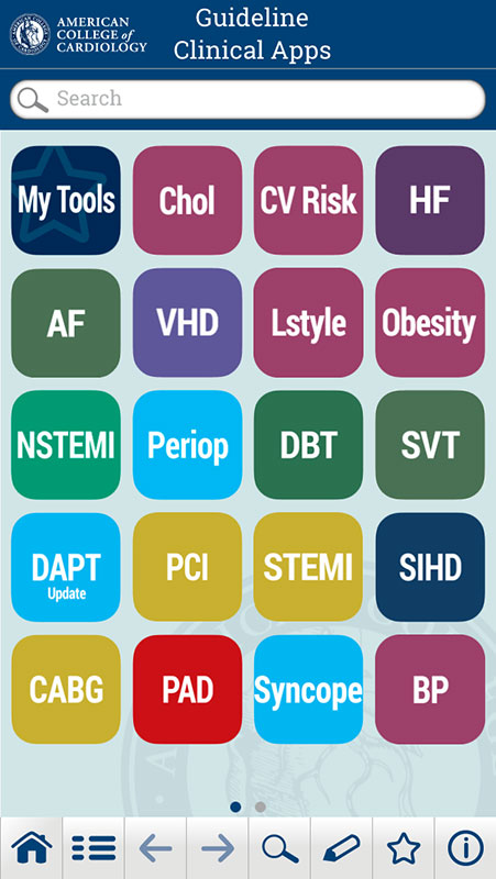 In 2014, the American College of Cardiology (ACC) launched Guideline Clinical App to bring all ACC/AHA guideline content to Android and iOS smartphones and tablets for free.