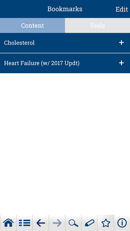 All content, including guidelines and tools, be bookmarked and then accessed from either the My Tools section or the Star button on the bottom navigation bar. This is the best way to avoid clunky navigation by adding the resources you may use more frequently in one spot.