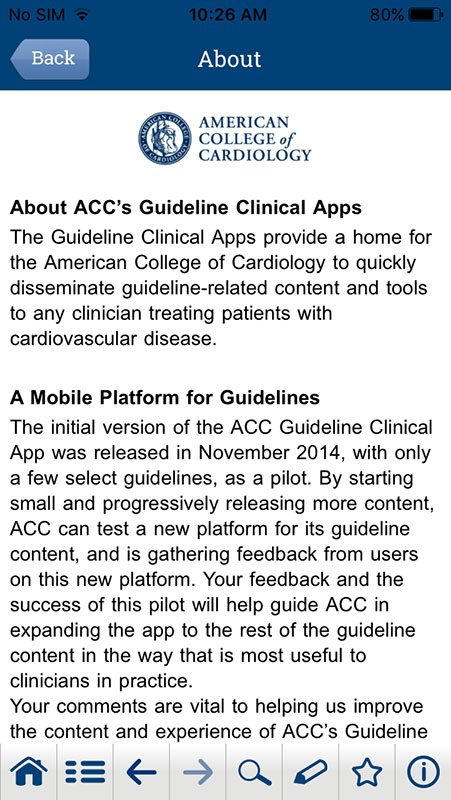 Overall, the ACC Guideline App appears to be an excellent resource with access to a plethora of features, tools, and useful information within the cardiovascular disease spectrum, making the ACC guidelines more accessible.