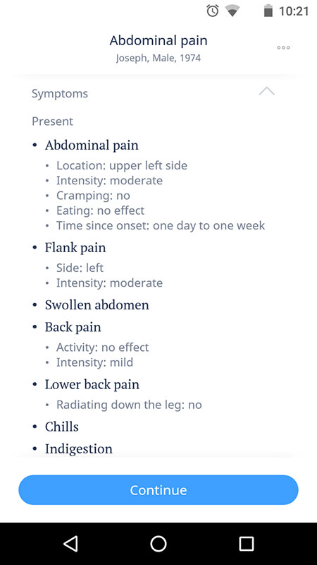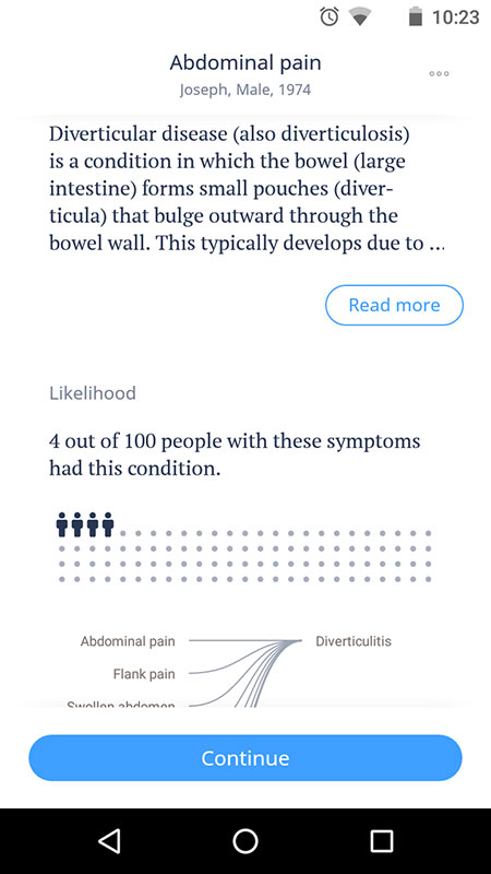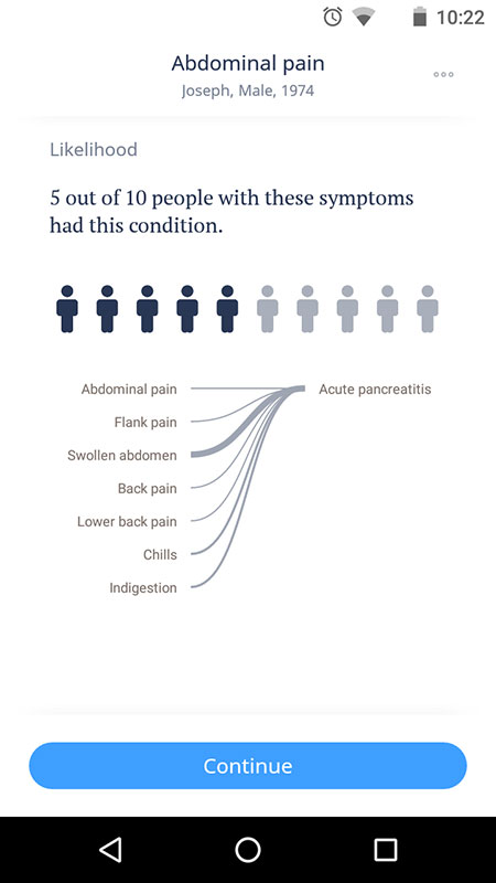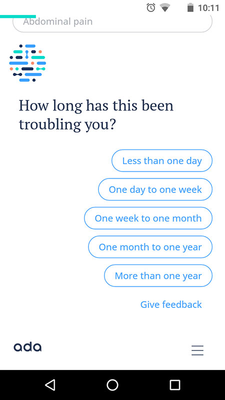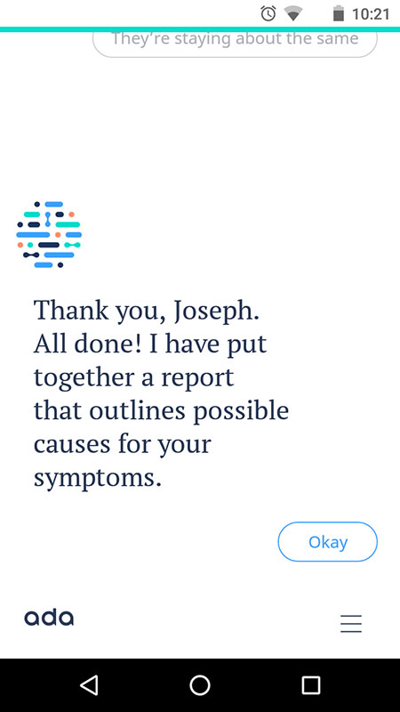 Using this intuitive approach, the app then provides possible diagnoses, just like any doctor would do. However, the most important thing is that Ada app isn't claiming to replace your doctor anytime soon.
