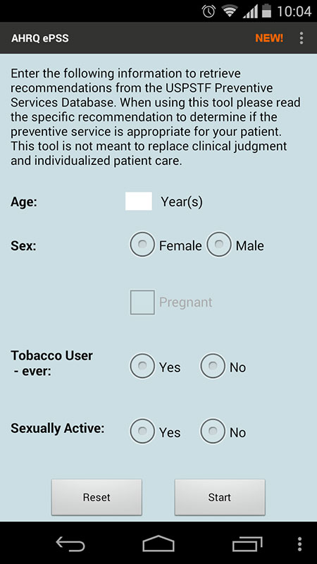 Several years ago AHRQ also developed a mobile app named AHRQ ePSS. Although it's hard to pronounce, it's very useful, offering the same features as web-based ePSS tool, i.e. recommendations for better screening, counseling, treatment and prevention.