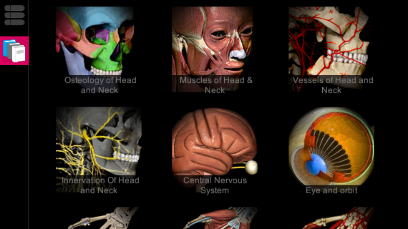 Once you've clicked the button to accept the terms and conditions of the app, you gain access to the main page of the atlas. On this page you will notice various anatomical models that include the following areas: