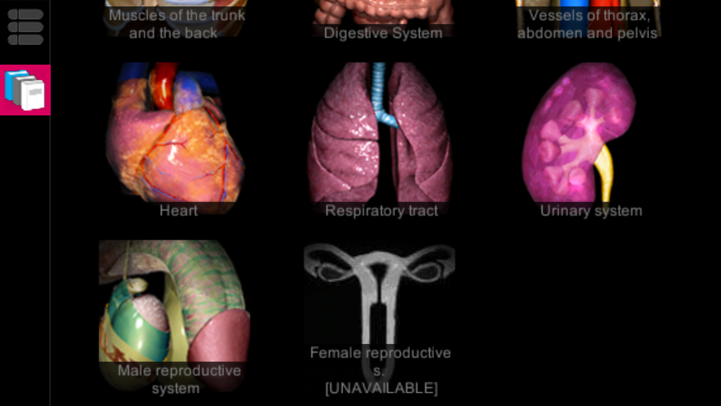 - The female reproductive system icon is present, but no content is available just yet. Apparently it will be made available soon.
