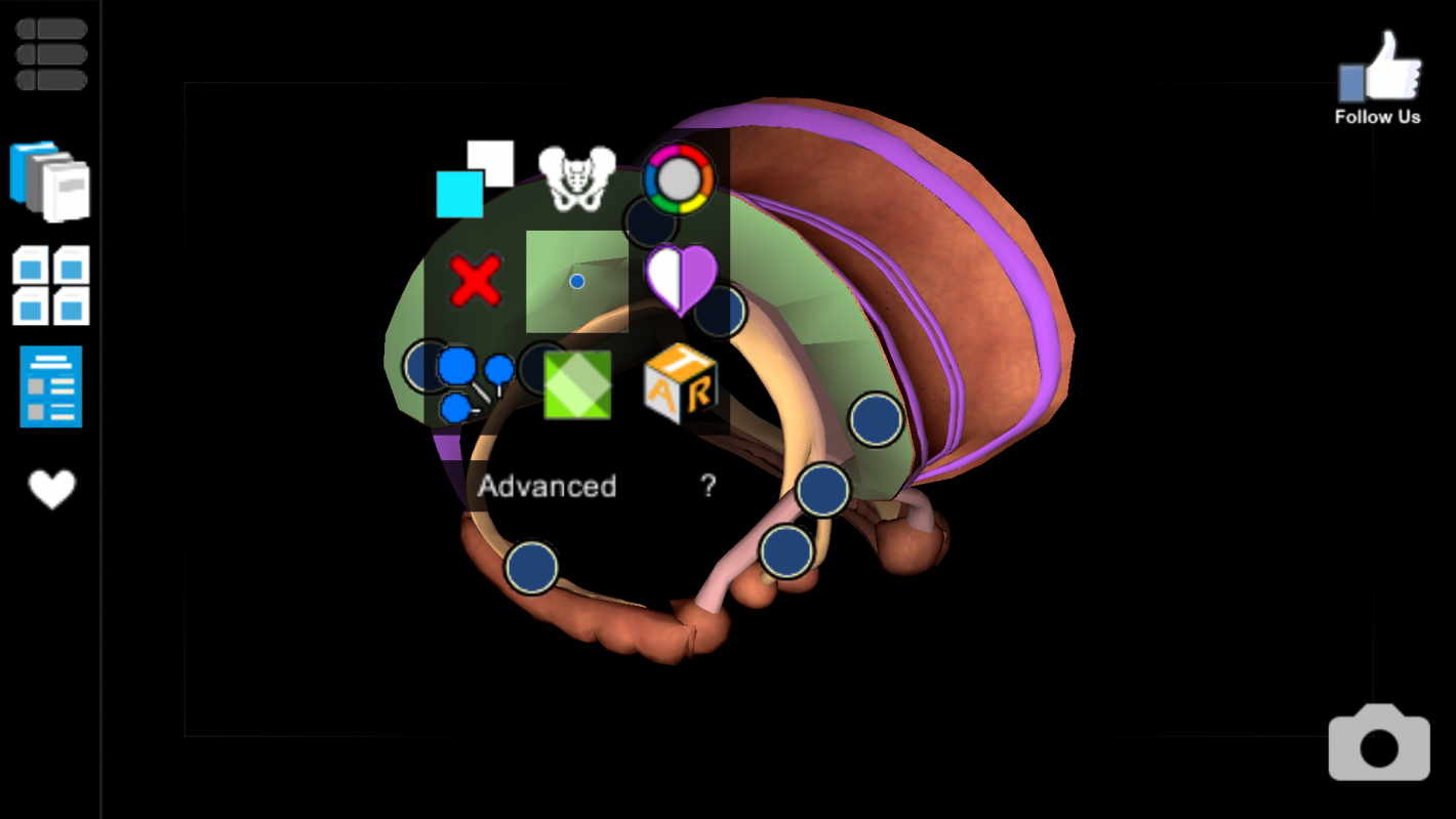 Whenever you open up a specific area to look at, a pop-up message appears that gives information on how to scroll through the screen in order to enhance your experience with the app. This makes it very easy to know how to rotate, turn and zoom in and out of the model. There's also an option where when you press on the image for 2 seconds, which accesses an option screen where you can choose to change the colours of the image and access a quiz relating to the chosen anatomy.