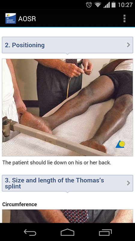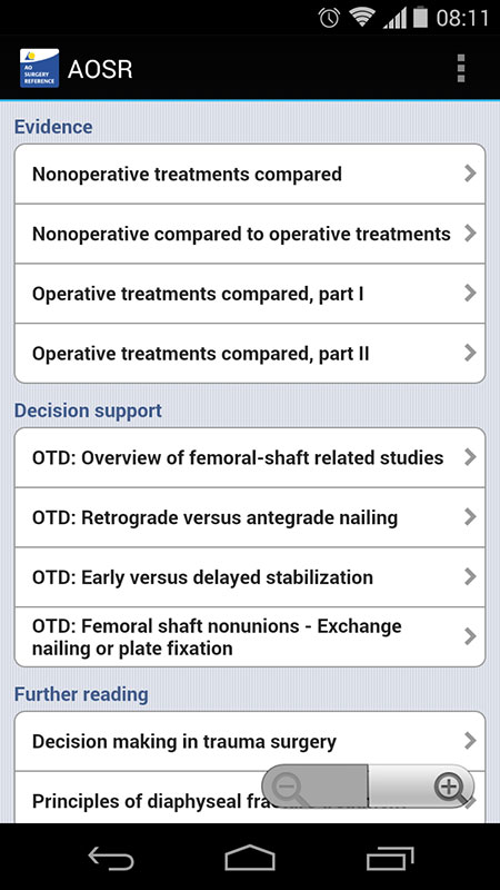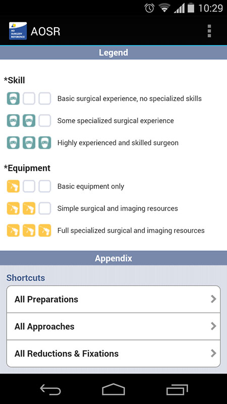 I can't help but think that the app would look better if the developers paid more attention to design, particularly regarding porting AO Surgery Reference website to mobile platforms, as well as adding more interactivity. The app looks a bit outdated as is, basically as an old iPhone app, even on Android device.