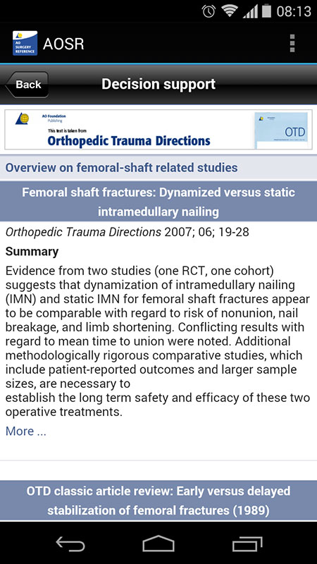 Users can also check the Decision Support section with plenty of useful articles and cases from Orthopedic Trauma Directions journal.