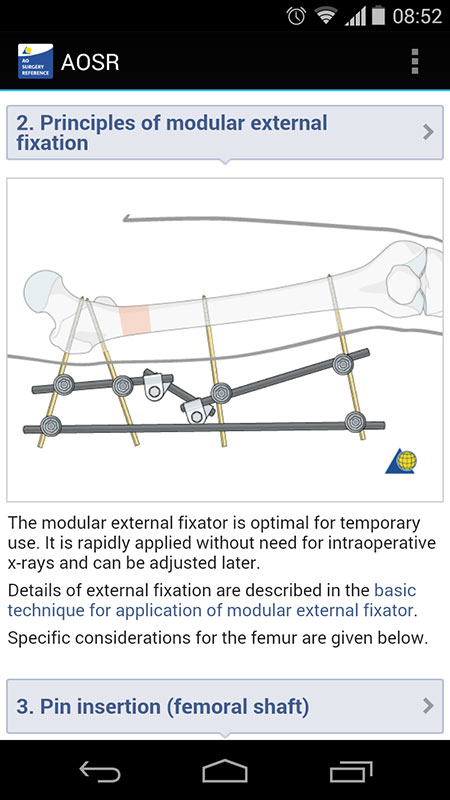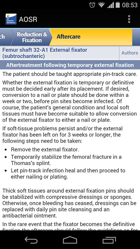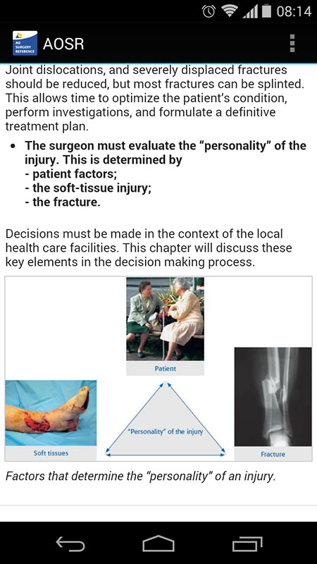However, even with these small interface and design quirks, the AO Surgery Reference app works really well. It provides comprehensive, textual and visual evidence-based guidelines for different fracture patterns, various management methods, as well as follow-up strategies during rehabilitation, which all make it a must-have app for orthopedic surgeons.