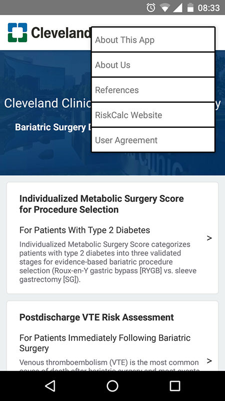 All tools are based on the scoring systems developed by the same team from Cleveland Clinic to help physicians answer important clinical questions in the field of bariatric surgery and ensure the patient and physician understand the relative risk and benefit of this surgery.