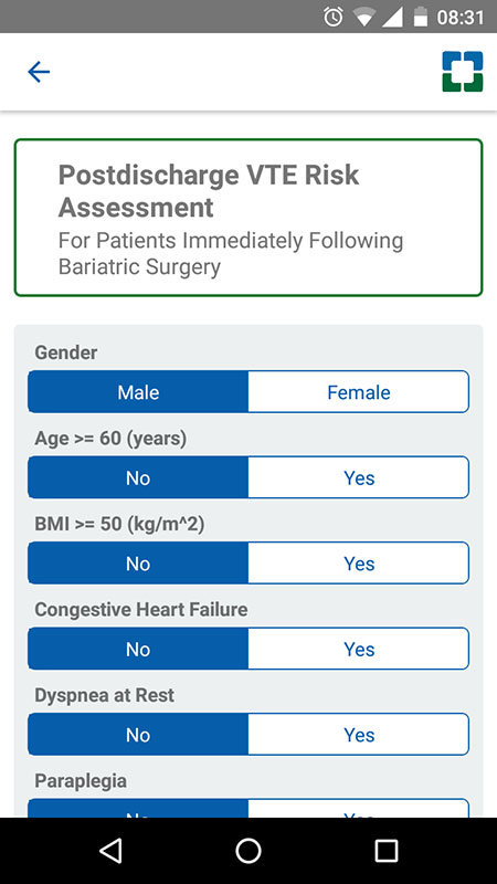 The second calculator in the app – a post-discharge VTE risk assessment tool - utilizes ten independent risk factors associated with post-discharge VTE to identify high-risk patients who would benefit from extended VTE prophylaxis after the discharge.