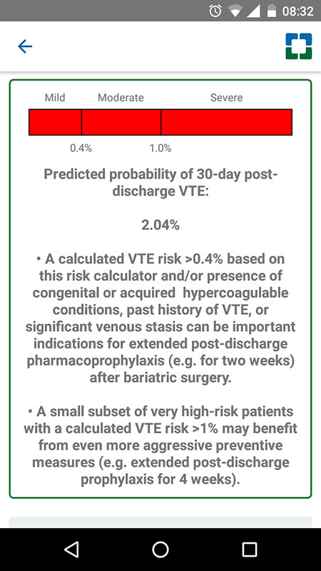 For example, they would get estimates of patient's chance of developing a serious post-operative adverse event after sleeve gastrectomy or a VTE post-bariatric surgery.