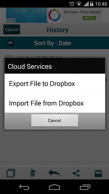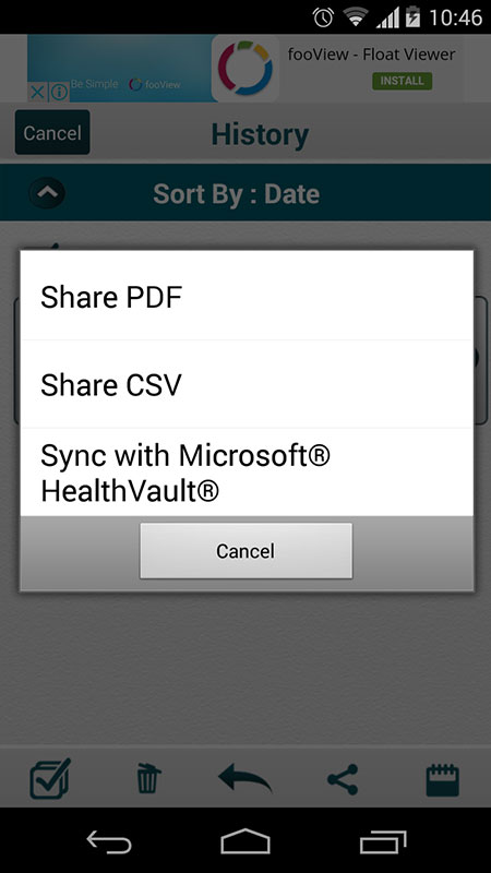 Sharing feature is great addition, but it's been awkwardly implemented. Tapping on Share button on the home screen lets you share only the most recent recording. If you want to share data you've collected, you need to tap on History first and then choose whether you'd like to share it as a PDF or CSV file. You also have an option to export the results to Dropbox, or import the data from it.