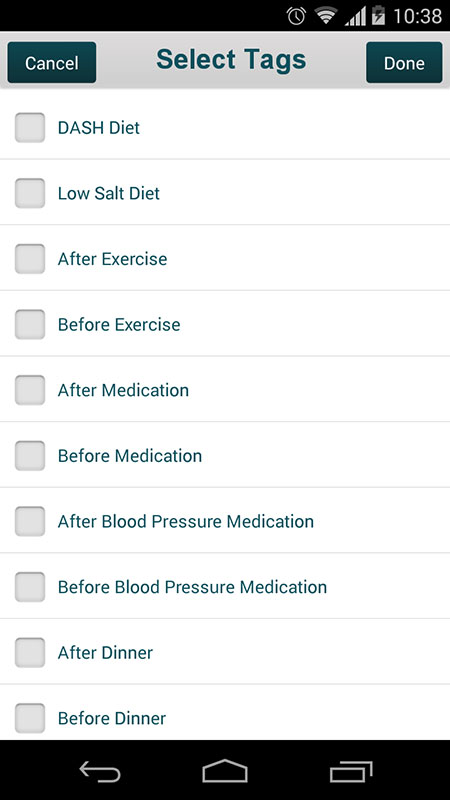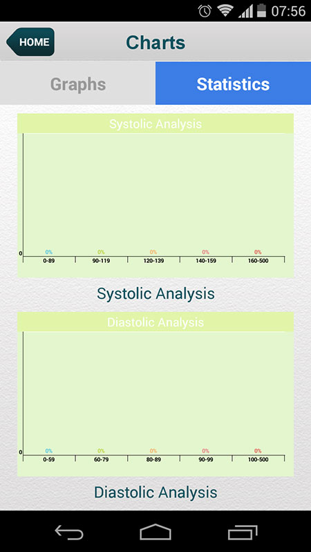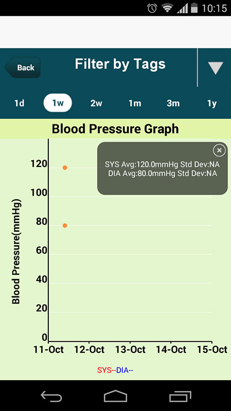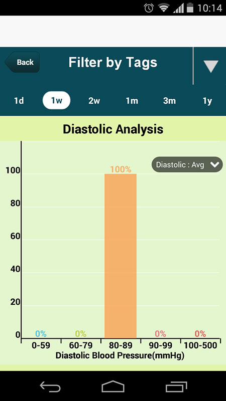 Multimedia is relying on couple of graphs and stats accessible via Charts button on the home screen. There are three graphs for blood pressure, pulse rate and weight, as well as statistics for systolic and diastolic BP analysis. The data within is populated automatically, as you save your recordings. Tap on any graph or statistics to open the charts containing the data from BP recordings that allow you monitor blood pressure, ranged from 1 day to 1 year. You can also filter the results by tags you may attach to each recording that help you track how certain activities, e.g. diet, exercise or medications affect blood pressure.