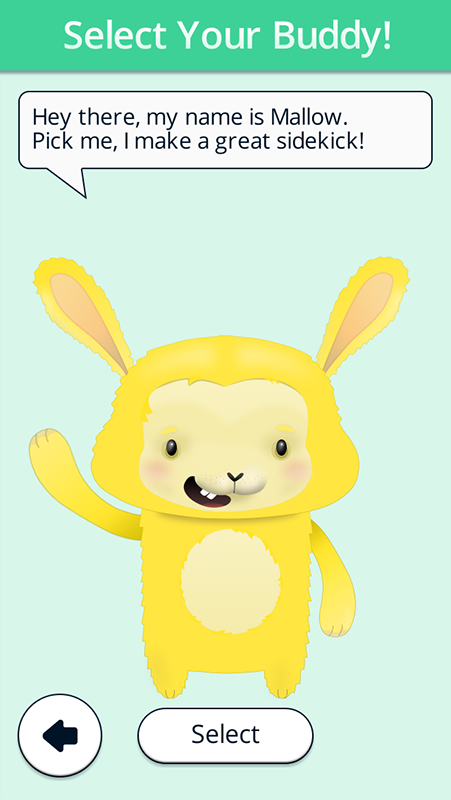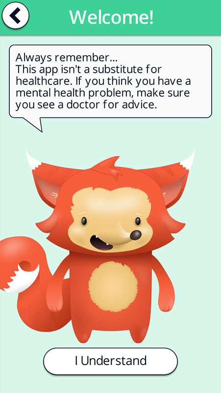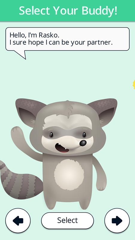 Upon opening the app, you'd be asked to choose your buddy - a cartoon fox Flitz, raccoon Rasko or rabbit Mallow. Buddy will guide you through the app and you'd be able to check in daily (your mood and alcohol or drug use).