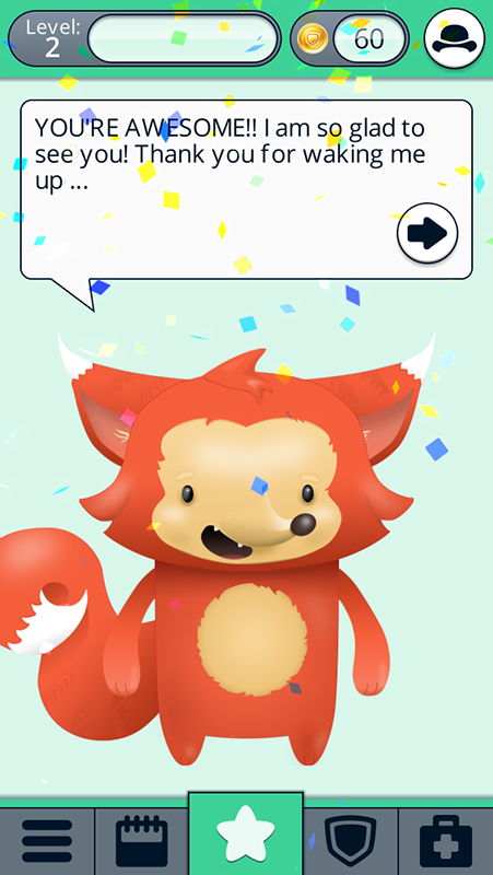 You'd wake your Buddy and earn 60 points you can use to buy various goodies and apparel for your Buddy, such as hats, glasses, belts, etc.