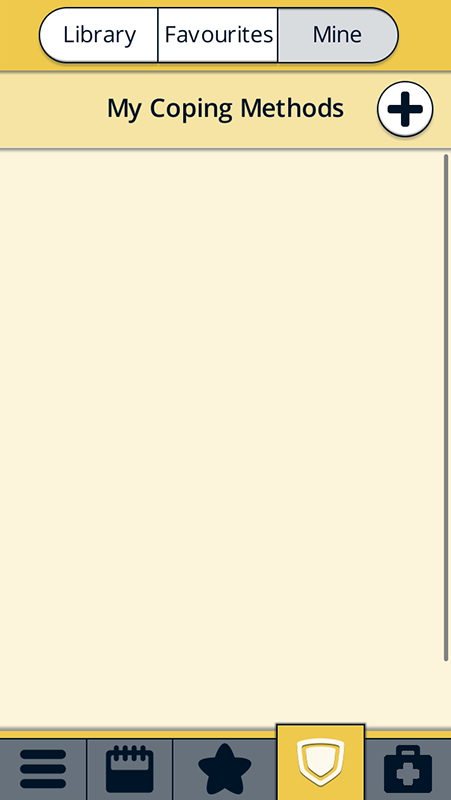 The information in this section is presented in a form of brief cards that emphasize the important instructions, questions, and steps required to cope with a particular problem. Each card can be added to the Favorites section for easier access. Users can also add and save their own coping methods.