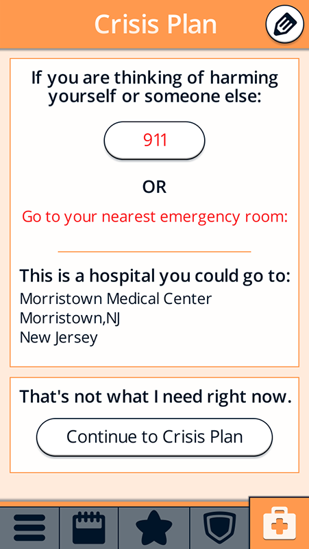 Finally, BoosterBuddy app creates a crisis plan where users can access all information in one spot, including coping statement and methods, as well as crisis and emergency contacts.