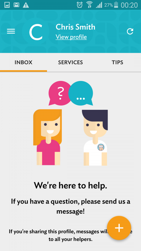 The 'inbox' button takes you to a section of the app where you can send any relevant questions to the service providers at CareZone.