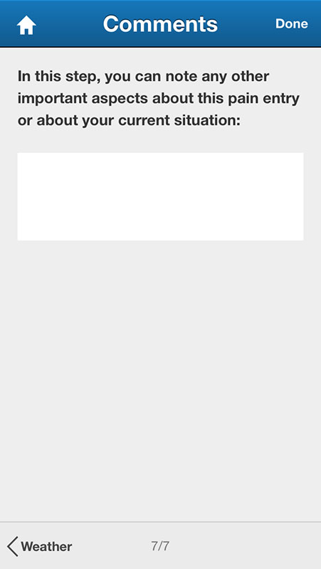 The final step in adding new pain entry is writing a comment, where you can note about your situation or the entry itself.