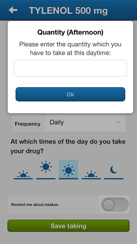 If it's recurring taking, you can set daily and weekly reminders, however, only if you purchase this option for $0.99. While it's convenient to have medication tracker and reminder all-in-one, there is a lot of apps that can do this for free. You can check some of them in the patient's guide to finding good medication reminder apps that we wrote a while ago.
