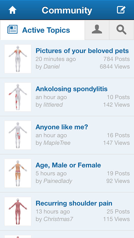 The highlight feature of CatchMyPain app is the discussion community, which is missing from other similar apps. There, users can discuss their pain, goals, and treatment with other users, and provide tips and support to each other. Community forums seem to be quite active and moderated to keep comments on topic and respectful.