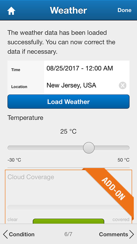 Next option in the tracker is checking weather data for your location. But, in the free version, you'd only be able to see temperature, while cloud coverage, humidity, the wind, precipitation, and other data is locked until you purchase it for $2.99.
