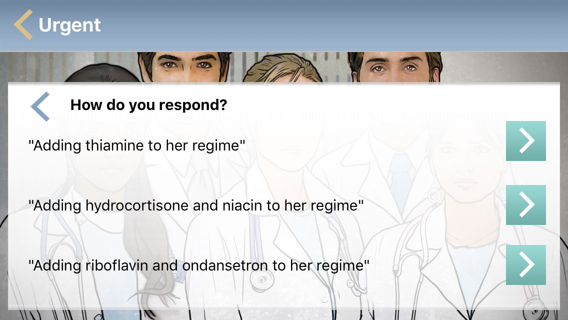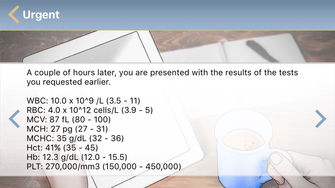 If you provide correct answer the case doesn't end, but continues with the next scenario, imitating the real shift in the ward. There are multiple scenarios within the case, and each starts after the previous is completed successfully. Also, each scenario follows the same pattern, sometimes adding unnecessary complications and drama. However, I didn't find this part annoying, because it requires you to gather all details and information carefully in order to learn more about particular cases.