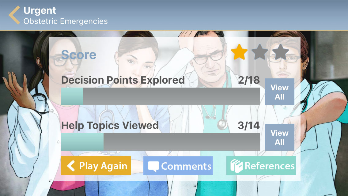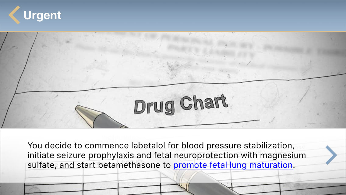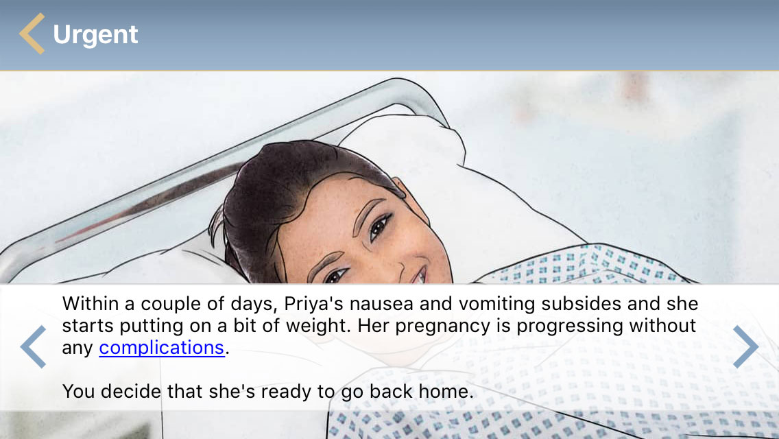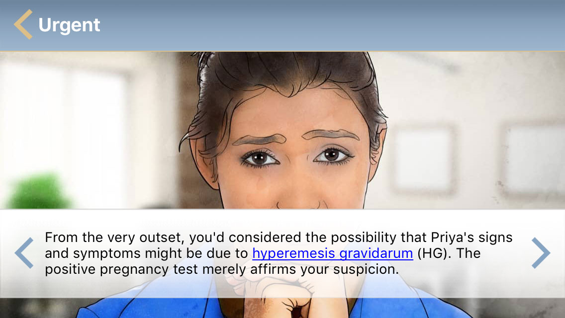For this review, I went through obstetrical emergencies. I expected I'll be asked questions in straightforward format and supposed to make my decisions based on the choices provided. However, I was pleasantly surprised because each case contains a narrative that helps you get into the story. The narrative is supported by illustrations, which are more mature looking than cartoony drawings in Prognosis app.