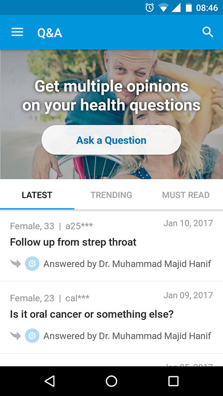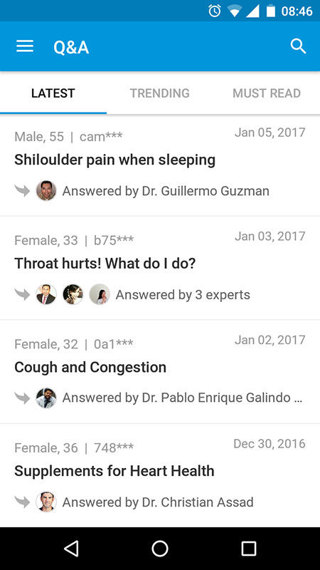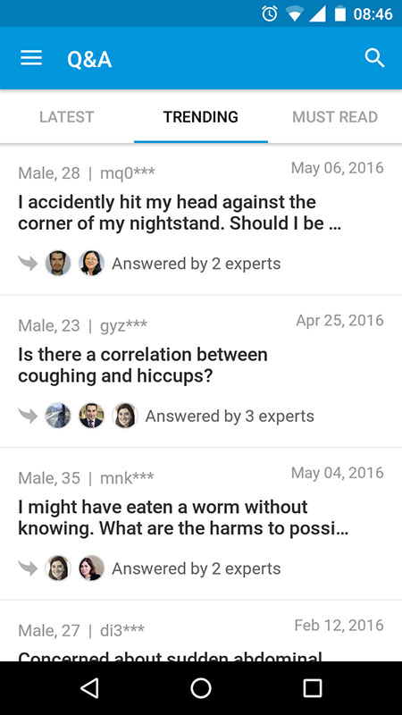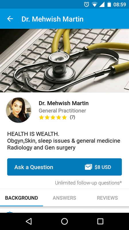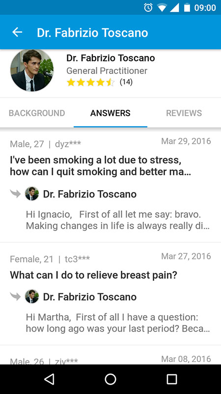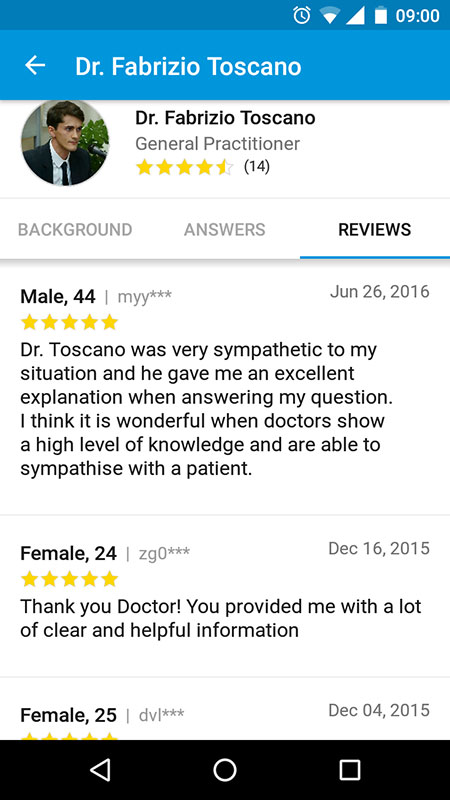 The patients can send their questions directly to the particular doctors in the Experts list. After receiving medical advice, patients can give doctors a star rating based on the quality of care provided.