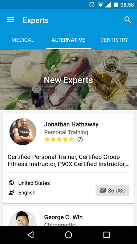 As I previously mentioned, the Curely app can be also used by physicians, dentists, and alternative medicine specialists. The app currently has 1,800+ board-certified physicians, 33 dentists, and 25 alternative medicine specialists. The experts are based worldwide.