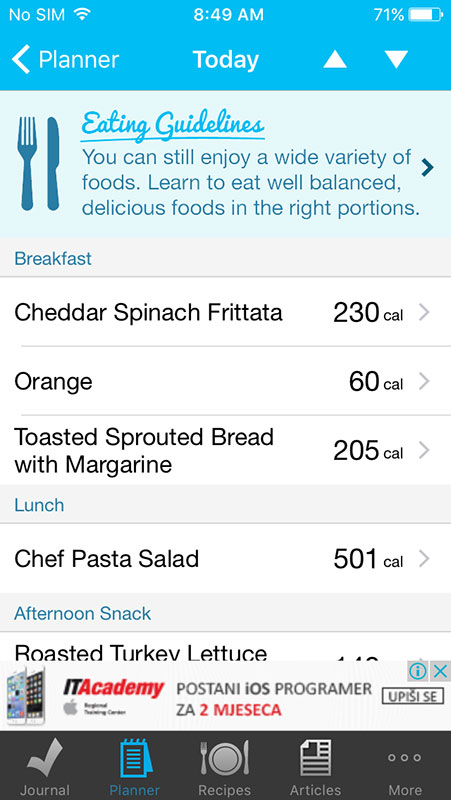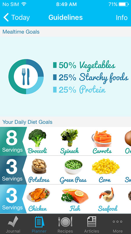 Planner suggests the food for you based on your calorie budget and activity level, and also provides eating guidelines with mealtime goals.