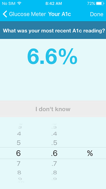 Adding new entries is straightforward and super easy. For example, when you want to track blood glucose levels, tap on it (the title on an orange ribbon) and follow the questions and instructions on the following screens. You'd be asked how often your doctor recommend you take your BG readings and at what time during the day. You can add glucose meters from the list, of course, if you use one, and finally, you would be asked to add your most recent A1c readings.