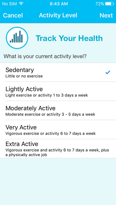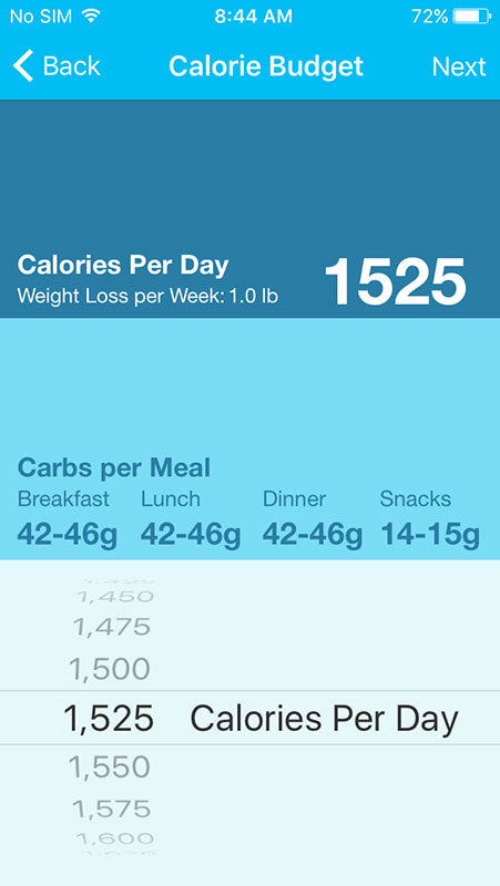 Diabetes in Check app also lets you track your carbs intake. First, you'd have to set your current activity levels, allowing the app to create a calorie budget for you, based on those levels. It will also provide you with a suggestion to space out your carbs with smaller, but more frequent meals.