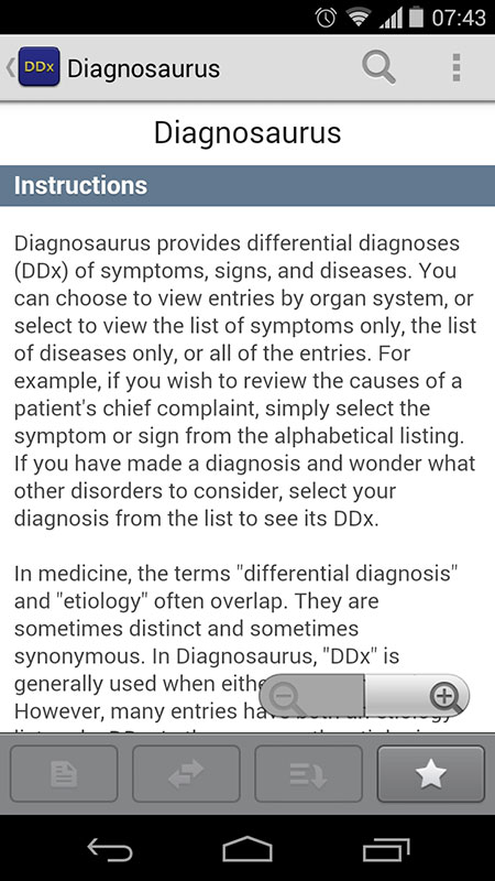 Once an integral part of 5-Minute Clinical Consult (5MCC) app we reviewed on SteadyHealth, Diagnosaurus DDx was eventually turned into stand-alone app for Android and iOS devices, but maintained the same look, and more or less the same functionality as its previous parent app.