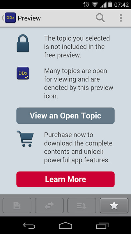 You'd notice this once you started the Diagnosaurus DDx app. It requires $4.99 purchase for full version, but you'd be able to choose the free preview that offer limited features, just like the 5MCC app.