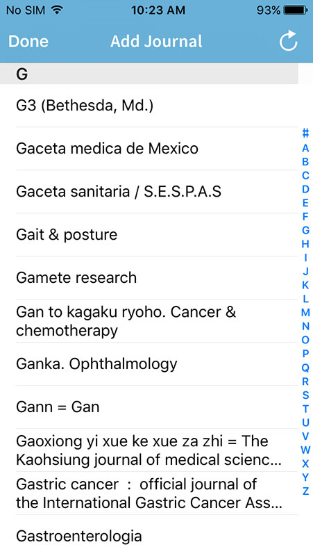 I was able to add more journals by tapping on plus icon. This led me to the list of all available journals, which literally blew me away. There are thousands (I didn't count, but browsing through the list took some time) of journals available, not only in English, which is amazing, making the Docphin app useful to physicians worldwide.