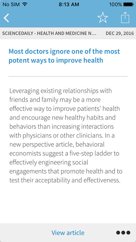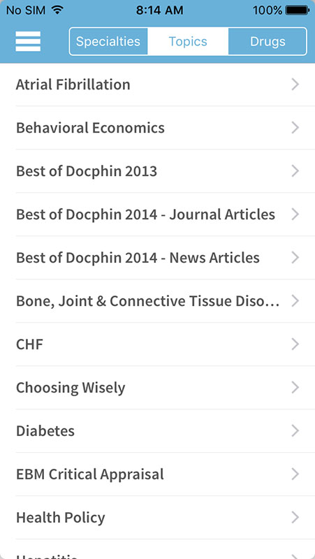 And that's not all. Among the journals, there are news sources such as ABC News - Health or New York Times that will allow you access their articles with multimedia, straight from the Docphin app.